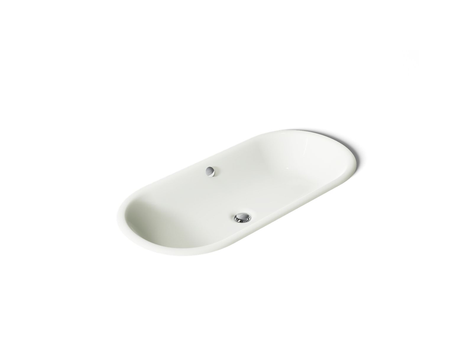 With its gently curved, organic shape, the KOHLER® Iron Plains sink combines distinctive style with the extreme durability, strength, and vintage soul of KOHLER® enameled cast iron. This 33" capsule-shaped painted underside offers two installation options - drop-in or undermount - giving you flexibility for a range of bathroom configurations.