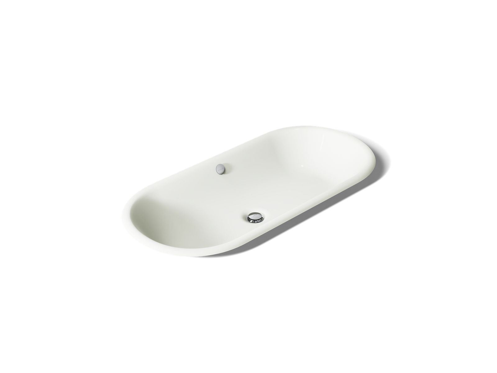 With its gently curved, organic shape, the KOHLER® Iron Plains sink combines distinctive style with the extreme durability, strength, and vintage soul of KOHLER® enameled cast iron. This 33" capsule-shaped bathroom sink with Iron Black-painted underside allows for a striking vessel installation as well as drop-in or undermount installation.
