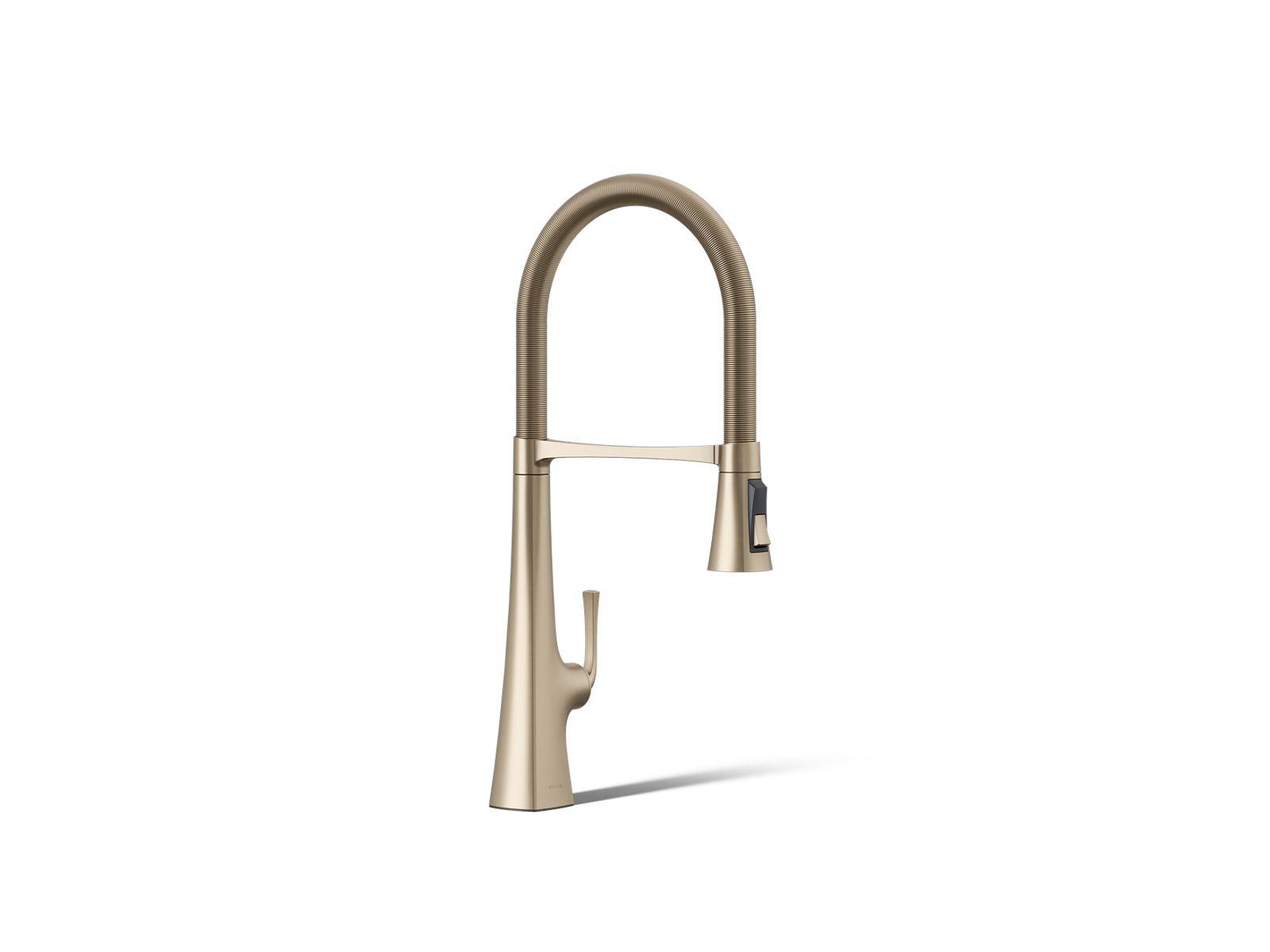 Graze Pull-down kitchen sink faucet with three-function sprayhead - Vibrant Brushed Moderne Brass