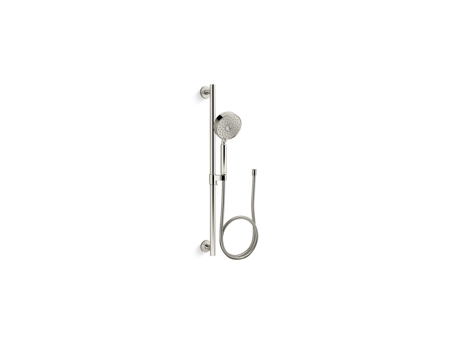 This all-in-one kit makes it easy to upgrade your showering space with a KOHLER® Purist multifunction handshower. The complete wall-mount kit includes the handshower, hose, slidebar and slidebar trim. An advanced spray engine provides three experiences—full coverage, pulsating massage or silk spray—all enhanced with Katalyst® air-induction technology for a completely indulgent showering experience. Ergonomic design offers ideal balance and weight in the hand.