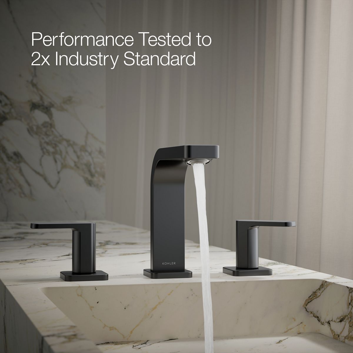 The KOHLER® Parallel widespread bathroom sink faucet is the epitome of understated chic. By combining circular shapes within the square design, the faucet’s balanced versatility allows it to blend in or stand out depending on your surrounding décor. Elevate your experience with KOHLER.