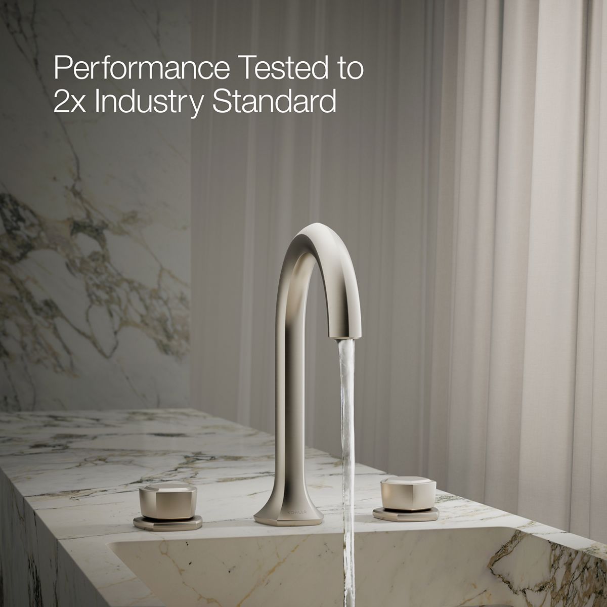 Unapologetically luxurious and truly unforgettable, KOHLER® Occasion bathroom sink faucets and accessories draw inspiration from 1960s Hollywood glamour and extravagance. Fashioned after the era’s sleek dress lines and bold car designs, the Occasion collection reflects graceful elegance, blending classic midcentury and modern design. Customize your bath with the collection’s distinctive pentagonal accents, faceted bases, flowing lines, and delicate edges. Choose a spout, handles, and finish to build your own signature design. Pair these elegant, minimalist widespread bathroom knob handles with valves with your choice of Occasion sink faucet spout for a look as fashionable as it is functional.