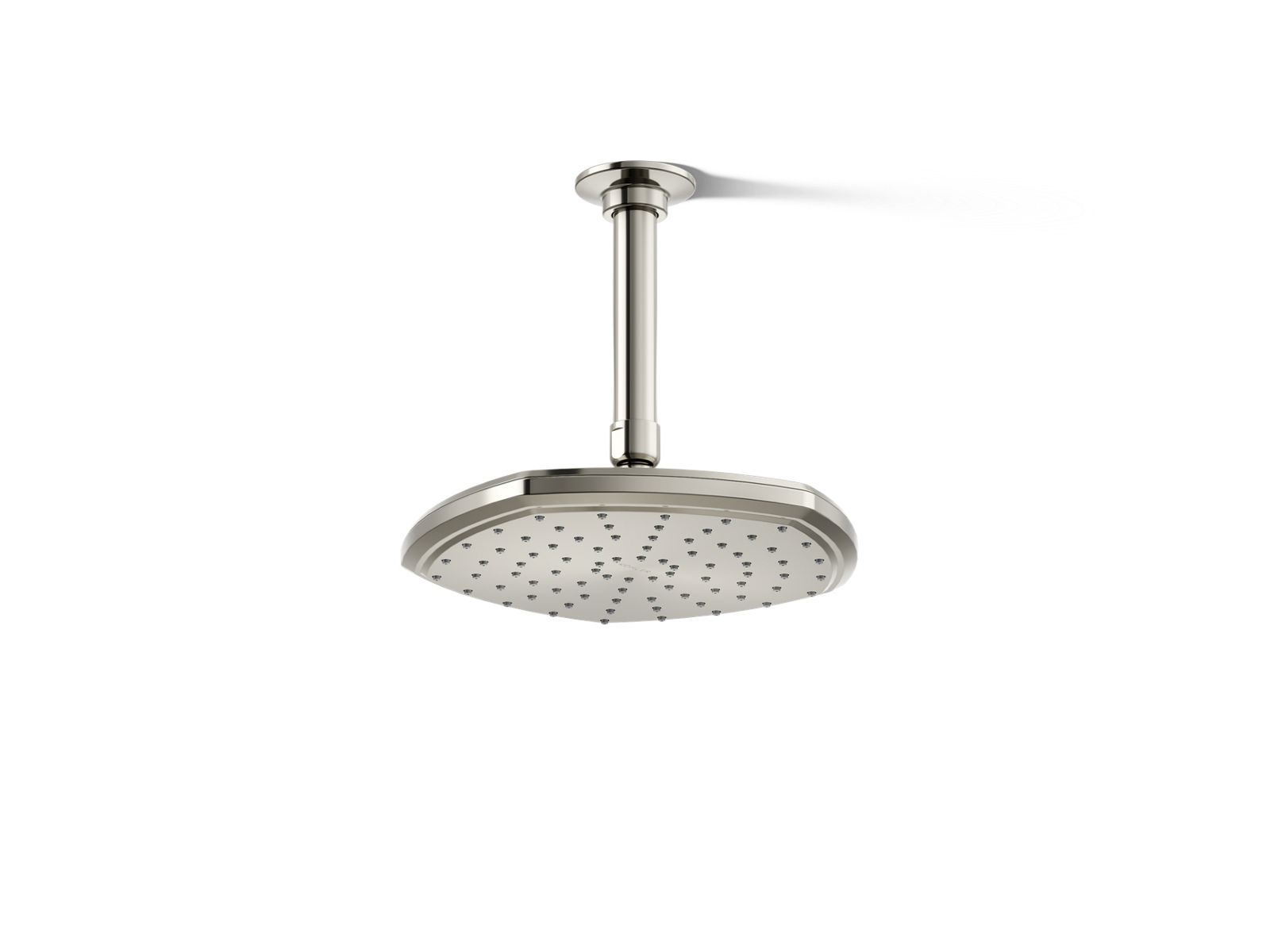 Unapologetically luxurious and truly unforgettable, KOHLER® Occasion bathroom faucets and accessories draw inspiration from 1960s Hollywood glamour and extravagance. Fashioned after the era’s sleek dress lines and bold car designs, the Occasion collection reflects graceful elegance with distinctive pentagonal accents, faceted bases, flowing lines, and delicate edges. Blending classic design with modern details, the 8" pentagon-shaped single-function Occasion pentagon ceiling-mount rainhead features a Full Coverage with Katalyst® spray experience for a shower as indulgent as it is fashionable. Choose your coordinating rainhead arm, valve trim, and accessories to create your signature bathroom design.