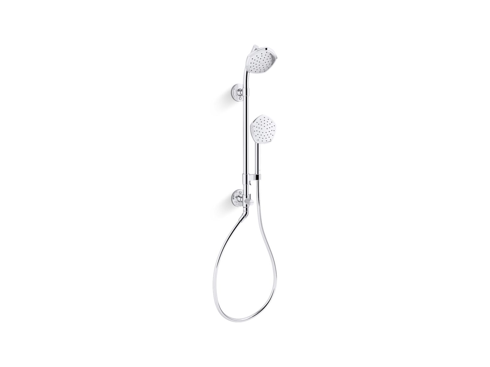 Unapologetically luxurious and truly unforgettable, KOHLER® Occasion bathroom faucets and accessories draw inspiration from 1960s Hollywood glamour and extravagance. Fashioned after the era’s sleek dress lines and bold car designs, the Occasion collection reflects graceful elegance with distinctive pentagonal accents, faceted bases, flowing lines, and delicate edges. Blending classic design with modern details and function, this water-conserving 1.75 gpm wall-mount shower column kit includes an 45-nozzle showerhead, 45-nozzle handshower, HydroRail-S shower column with handshower holder, and hose. Combine with coordinating valve trim and accessories to create your signature bathroom design.