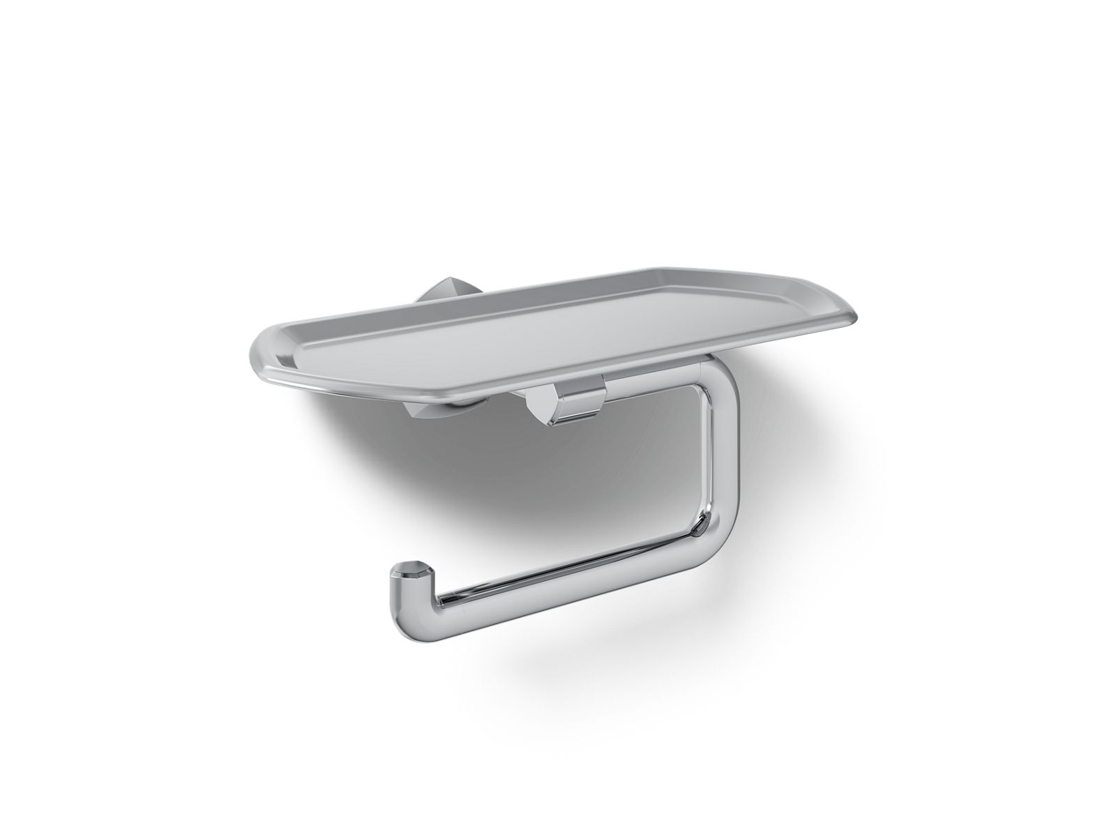 Unapologetically luxurious and truly unforgettable, KOHLER® Occasion bathroom accessories draw inspiration from 1960s Hollywood glamour and extravagance. Fashioned after the era’s sleek dress lines and bold car designs, the Occasion collection reflects graceful elegance, blending classic midcentury style with modern design. Customize your bathroom with the collection’s distinctive pentagonal accents, faceted bases, flowing lines, and delicate edges. The toilet paper holder with storage tray adds elegance and function to your space—in finishes to match your faucet and other accessories.