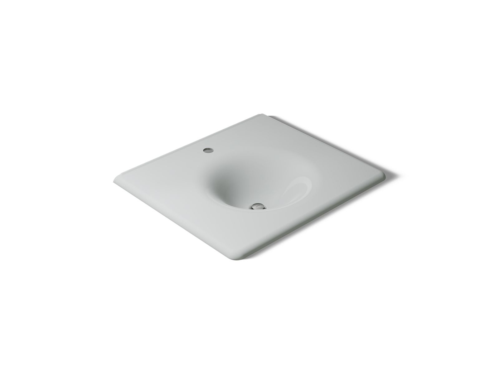 With its graceful curves, the KOHLER® Iron/Impressions sink adds elegance to the bathroom. The rectangular vanity top countertop flows seamlessly into a round basin, creating a sophisticated design element that coordinates with 24" vanities. Enameled cast iron construction makes it durable and easy to clean.