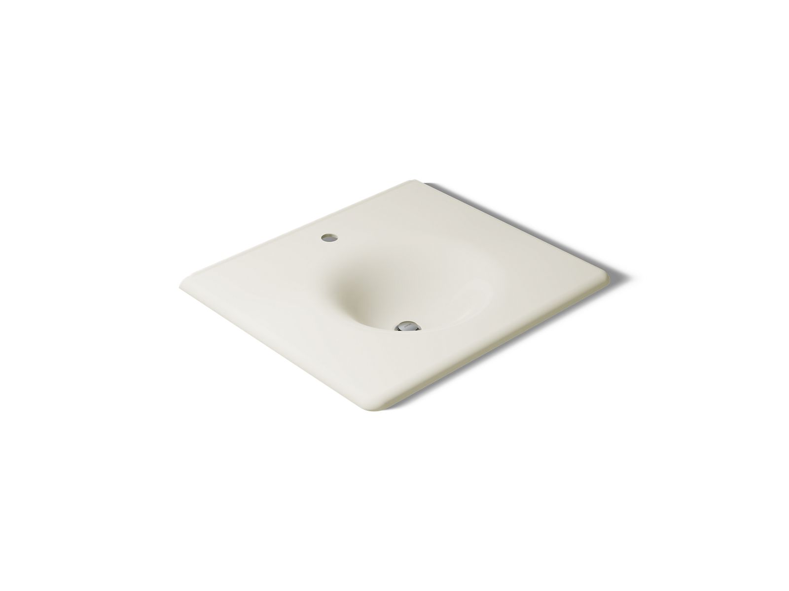 With its graceful curves, the KOHLER® Iron/Impressions sink adds elegance to the bathroom. The rectangular vanity top countertop flows seamlessly into a round basin, creating a sophisticated design element that coordinates with 24" vanities. Enameled cast iron construction makes it durable and easy to clean.