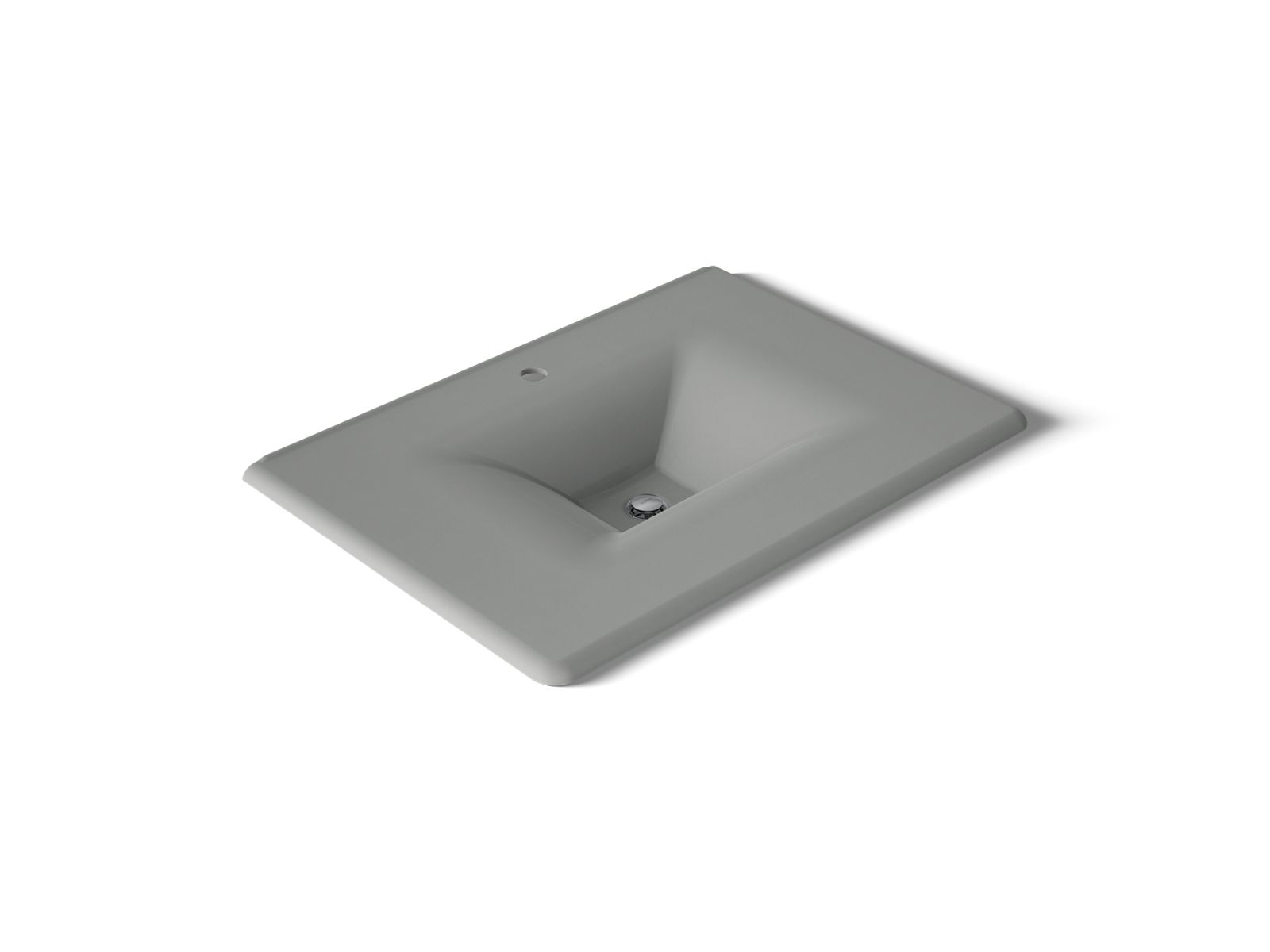 With its graceful sloping sides, the KOHLER® Iron/Impressions sink adds elegance to the bathroom. The rectangular vanity top countertop curves seamlessly into a sleek basin, creating a sophisticated design element that coordinates with vanities and iron console tables. Enameled cast iron construction makes it durable and easy to clean.