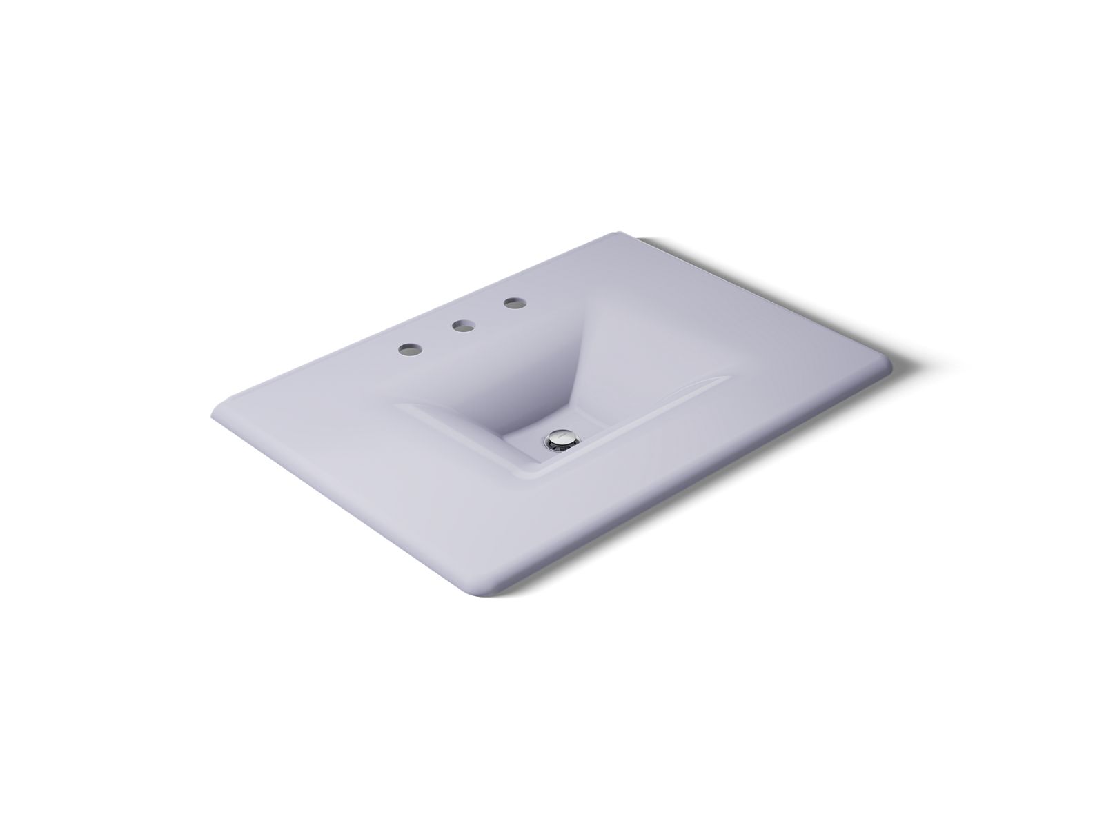 With its graceful sloping sides, the KOHLER® Iron/Impressions sink adds elegance to the bathroom. The rectangular vanity top countertop curves seamlessly into a sleek basin, creating a sophisticated design element that coordinates with 30" vanities. Enameled cast iron construction makes it durable and easy to clean.