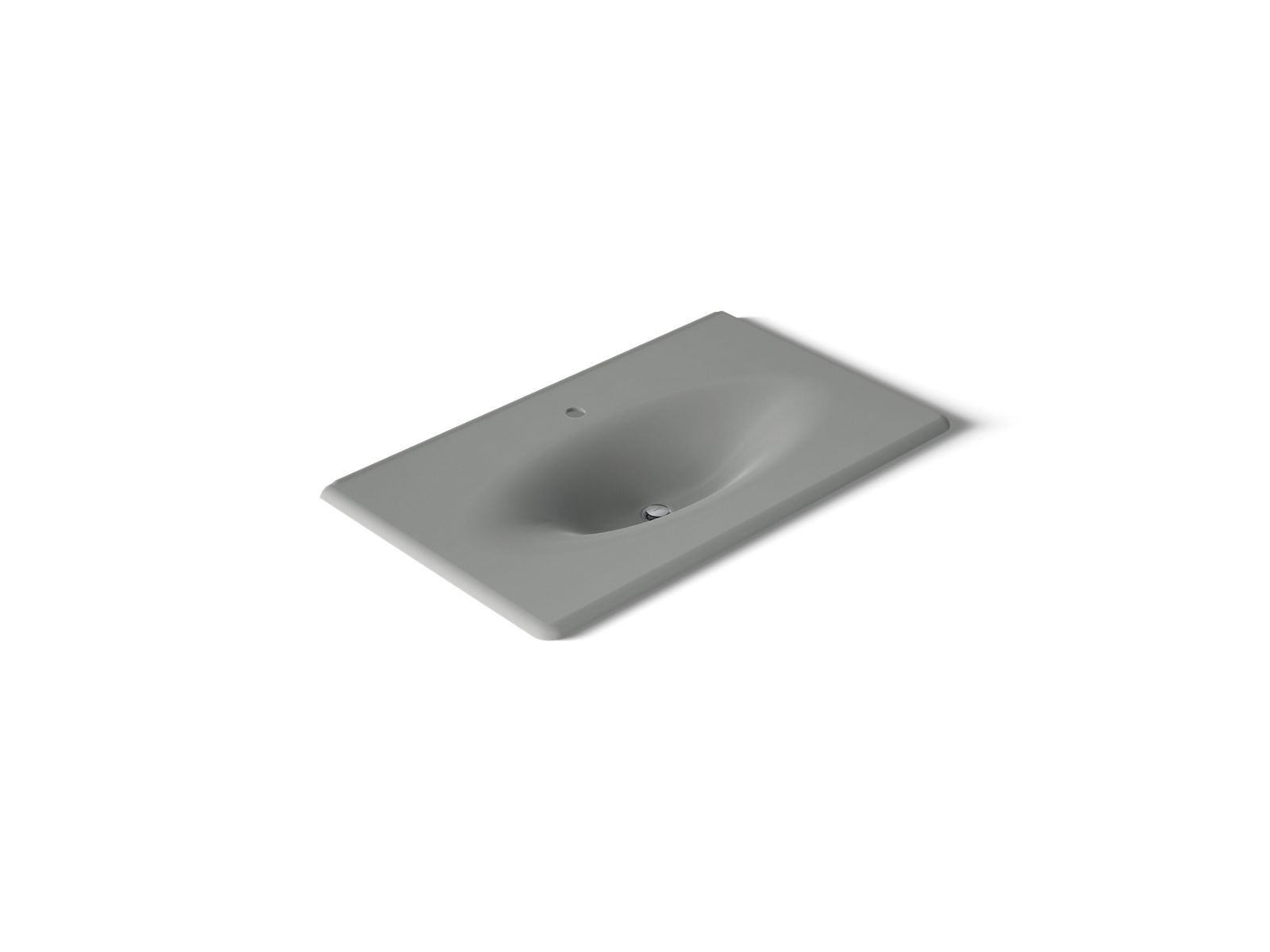 With its graceful curves, the KOHLER® Iron/Impressions sink adds elegance to the bathroom. The rectangular vanity top countertop flows seamlessly into an elongated oval basin, creating a sophisticated design element that coordinates with 36" vanities. Enameled cast iron construction makes it durable and easy to clean.