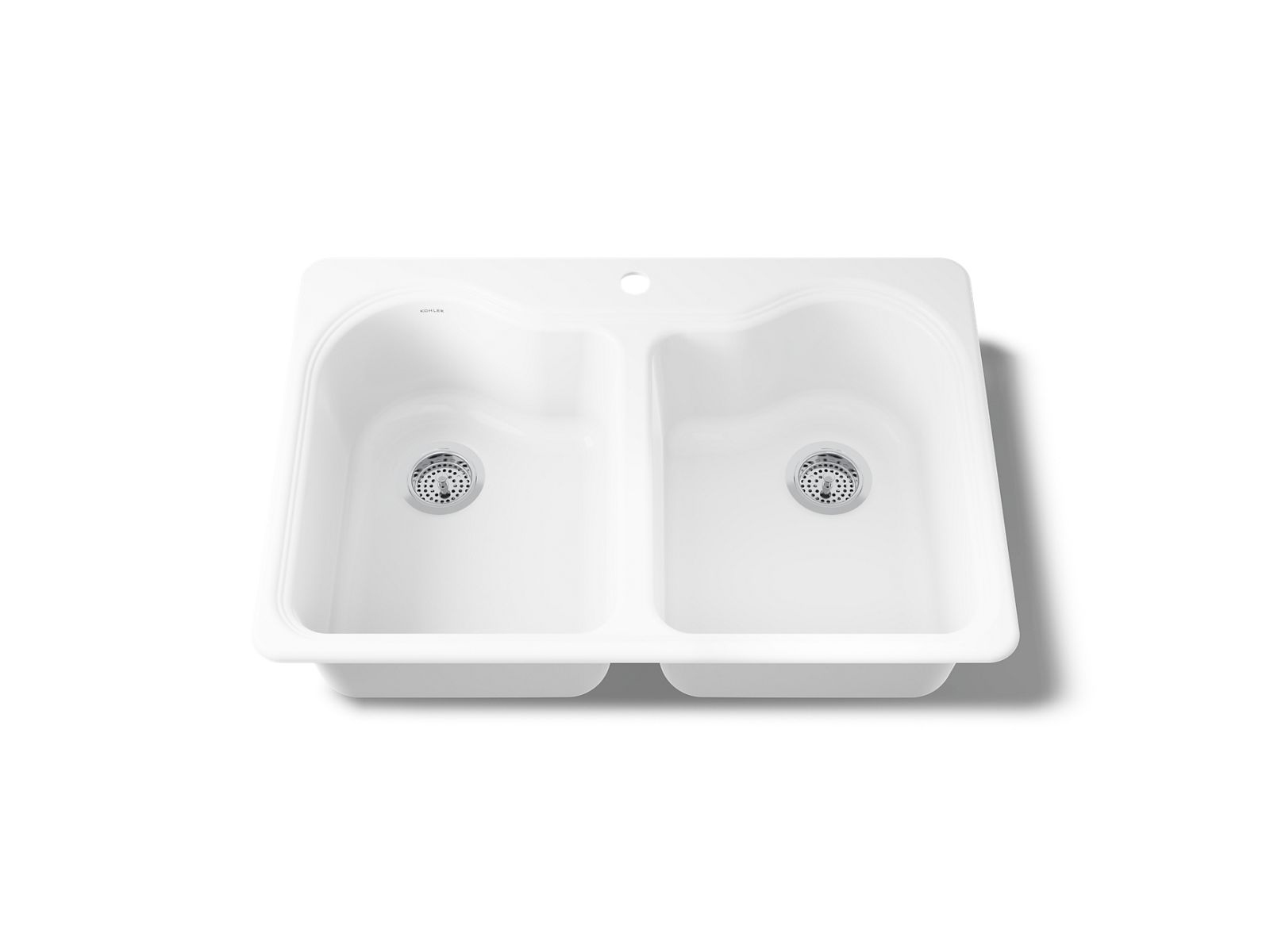The unique scalloped design of this KOHLER® Hartland sink adds a distinctive accent to a wide variety of kitchen styles from traditional to contemporary. Two equal-sized bowls with a graduated rim offer ample workspace for a range of tasks. Crafted from enameled cast iron, this top-mount kitchen sink resists chipping, cracking, or burning for years of beauty and reliable performance.