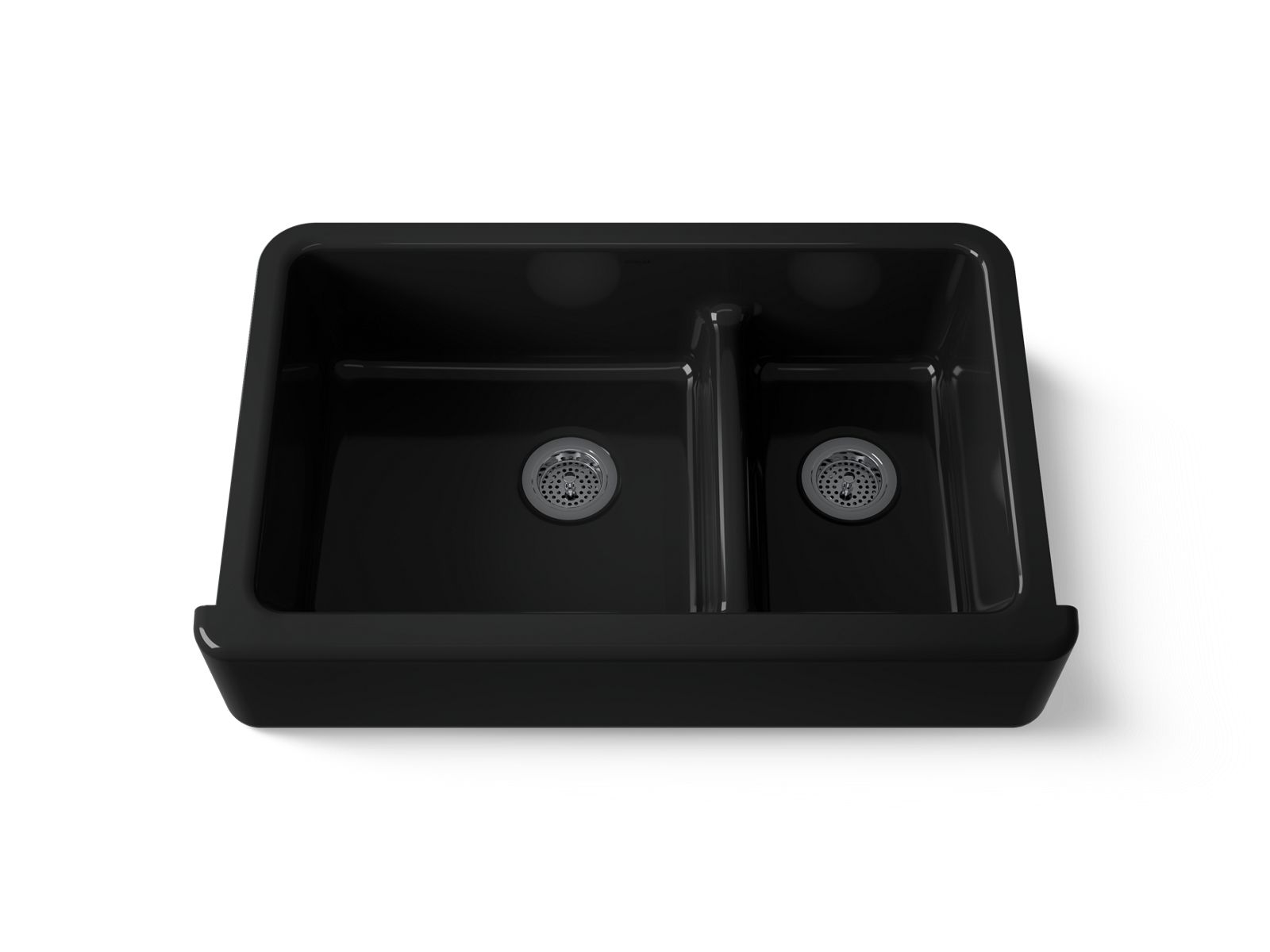 Bring classic farmhouse charm and modern functionality to your kitchen with KOHLER® Whitehaven, an apron-front double-bowl kitchen sink that elevates any space. The Self-Trimming® design simplifies installation by overlapping the cabinet face, creating a seamless, professional look. Crafted from durable enameled cast iron, Whitehaven resists chipping, cracking, and burning for years of lasting beauty. The innovative Smart Divide® feature offers a low-profile barrier between bowls, making it easy to handle large cookware while keeping compartments separate. Designed to fit most standard 36" apron-front cabinetry, this sink blends timeless style with everyday convenience.