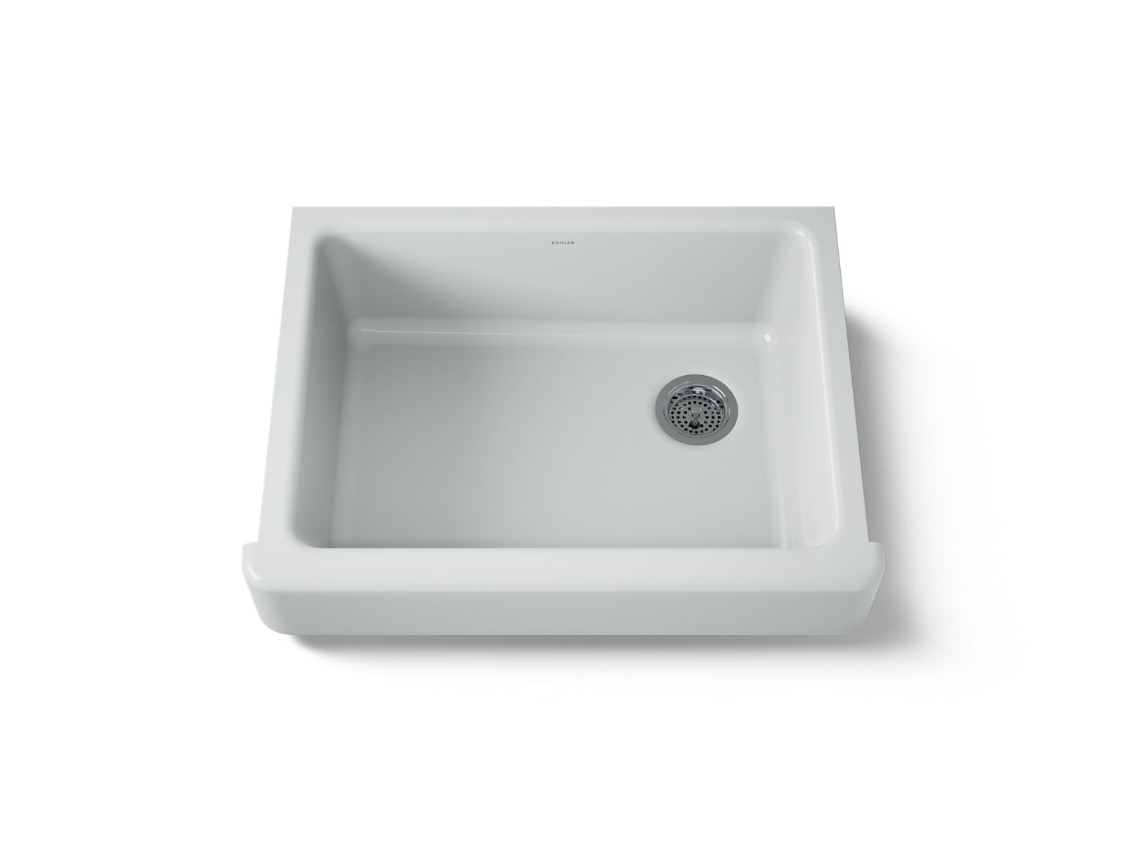 The KOHLER® Whitehaven apron-front kitchen sink features a streamlined and versatile farmhouse style. Perfect for remodeling projects, the Self-Trimming design requires only a rough cut to new or existing 30-inch standard cabinetry for simple installation and beautiful results. A large single basin accommodates large pots and pans, while the sloped bottom helps with draining and cleanup. Crafted from enameled cast iron, this sink resists chipping, cracking, or burning for years of beauty and reliable performance.