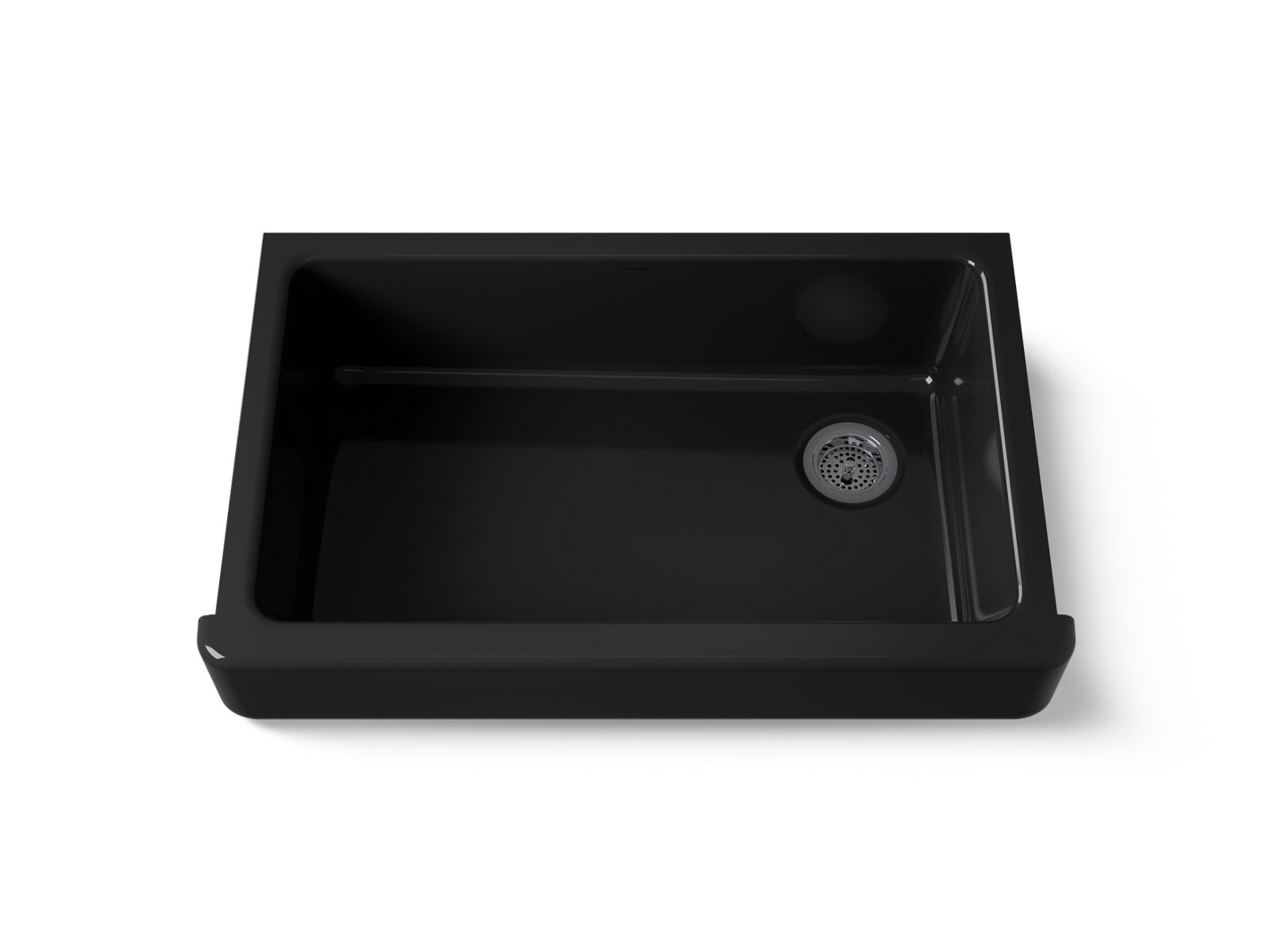 The KOHLER® Whitehaven apron-front kitchen sink features a streamlined and versatile farmhouse style to complement any decor. Perfect for remodeling projects, it has a shortened apron that allows for installation on most new or existing 36-inch standard cabinetry. The Self-Trimming design requires only a simple rough cut, overlapping the cabinet face for beautiful results and easy installation. A large single basin accommodates large pots and pans, while the sloped bottom helps with draining and cleanup. Crafted from enameled cast iron, this sink resists chipping, cracking, or burning for years of beauty and reliable performance.