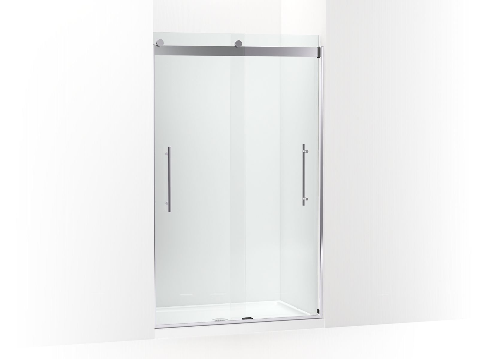 Bringing new technology and sleek style to the contemporary bathroom, KOHLER® Levity plus clear frameless sliding shower doors feature an innovative roller design that provides an amazingly smooth, quiet sliding action for a difference you can feel. Fully bypassable glass panels make installation easier than ever and allow for adjustability while the door is hanging. Vertical blade handles complement the modern minimalist look, creating an open, inviting space for showering. Premium 5/16"-thick Crystal Clear glass offers a luxurious feel.