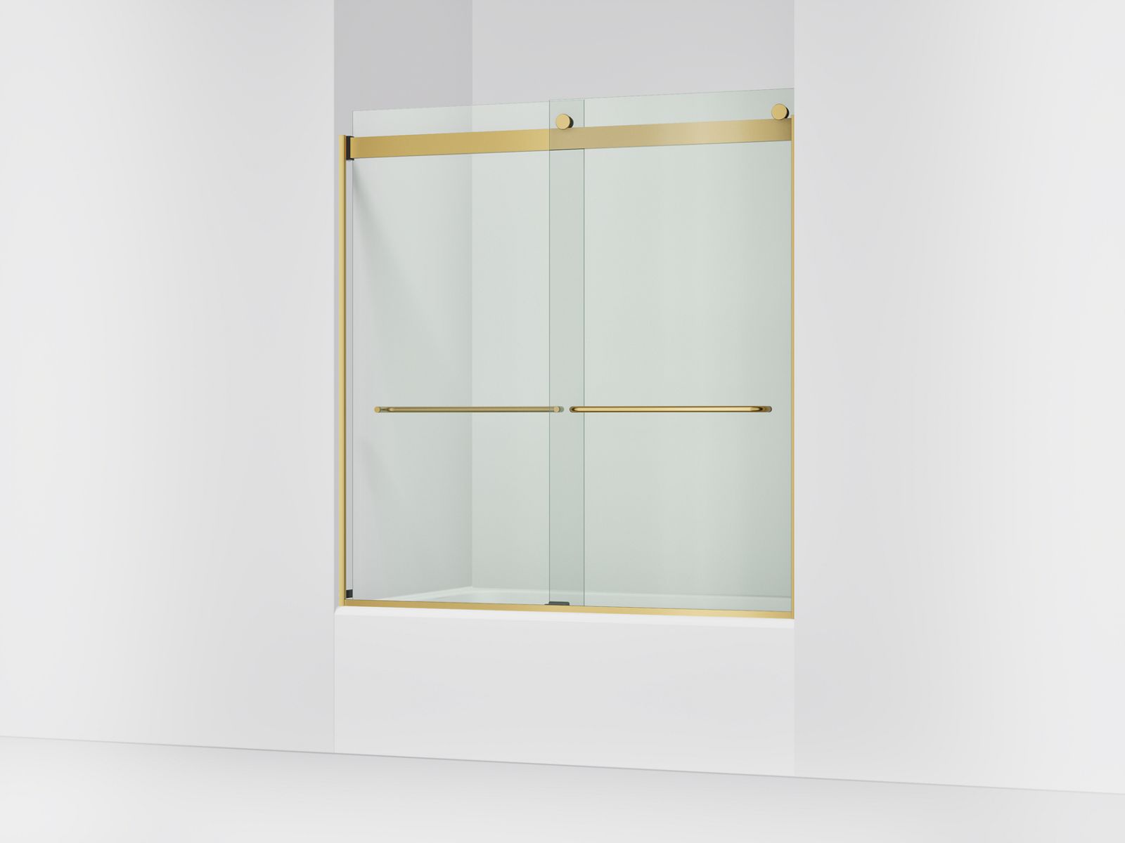 Bringing new technology and sleek style to the contemporary bath, KOHLER® Levity clear sliding bath doors feature an innovative bypass system and roller design that provide an amazingly smooth, quiet sliding action for a difference you can feel. Levity's unique design, including fully bypassable glass panels, makes installation easier than ever and allows for adjustability while the door is hanging. Gently curved towel bars accentuate the contemporary style of Levity bath doors.