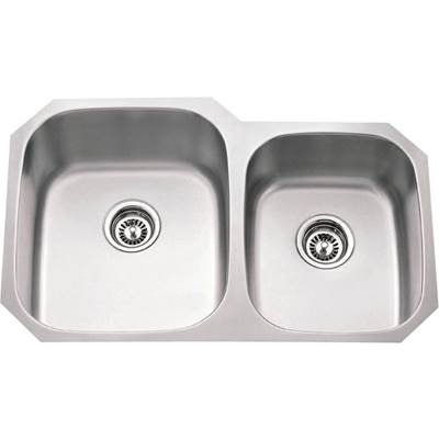 This UPC Certified offset double bowl undermount sink is made of high quality 18 gauge SUS304 Stainless Steel. The offset bowls are sized to easily complete tasks in each bowl simultaneously. The large (left) bowl measures 15-3/4'' L x 18-3/4'' W x 9'' D and the small (right) bowl measures 13'' L x 16-5/8'' W x 7-1/2'' D, and offset sink drain with a diameter of 3.5'' helps with quick drainage. A strong and quiet sink featuring an added layer of insulation on the bottom to reduce sound and reinforced plates on the sides and bottom help prevent bending and buckling. The brushed satin finish is easy to clean and helps camouflage small scratches that could appear overtime of daily use. Strainer (STRAINER-200) is sold separately.