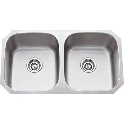 Instantly upgrade your kitchen with this undermount, UPC Certified sink with two equal bowls measuring 14-1/2'' L x 16-1/2'' W x 9'' D. Made of high quality 18 gauge SUS304 Stainless steel, this lasting sink is the perfect sink for home chefs. An added layer of insulation aids in sound dampening and the reinforced plates ensure the sink will stand the test of time. The brushed satin finish helps camouflage small scratches that could appear overtime with daily use and the offset drain with a diameter of 3.5'' will have your sink will drain in no time. The sink strainer (STRAINER-200) is sold separately.